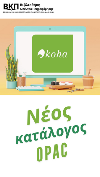 Σας ενημερώνουμε ότι στις Βιβλιοθήκες του ΕΚΠΑ λειτουργεί πλέον το νέο πληροφοριακό σύστημα Βιβλιοθήκης Koha.